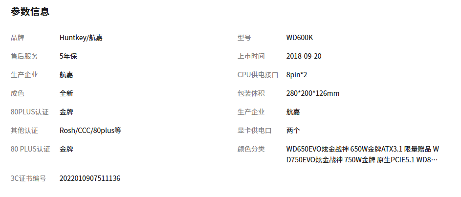 航嘉电源WD650